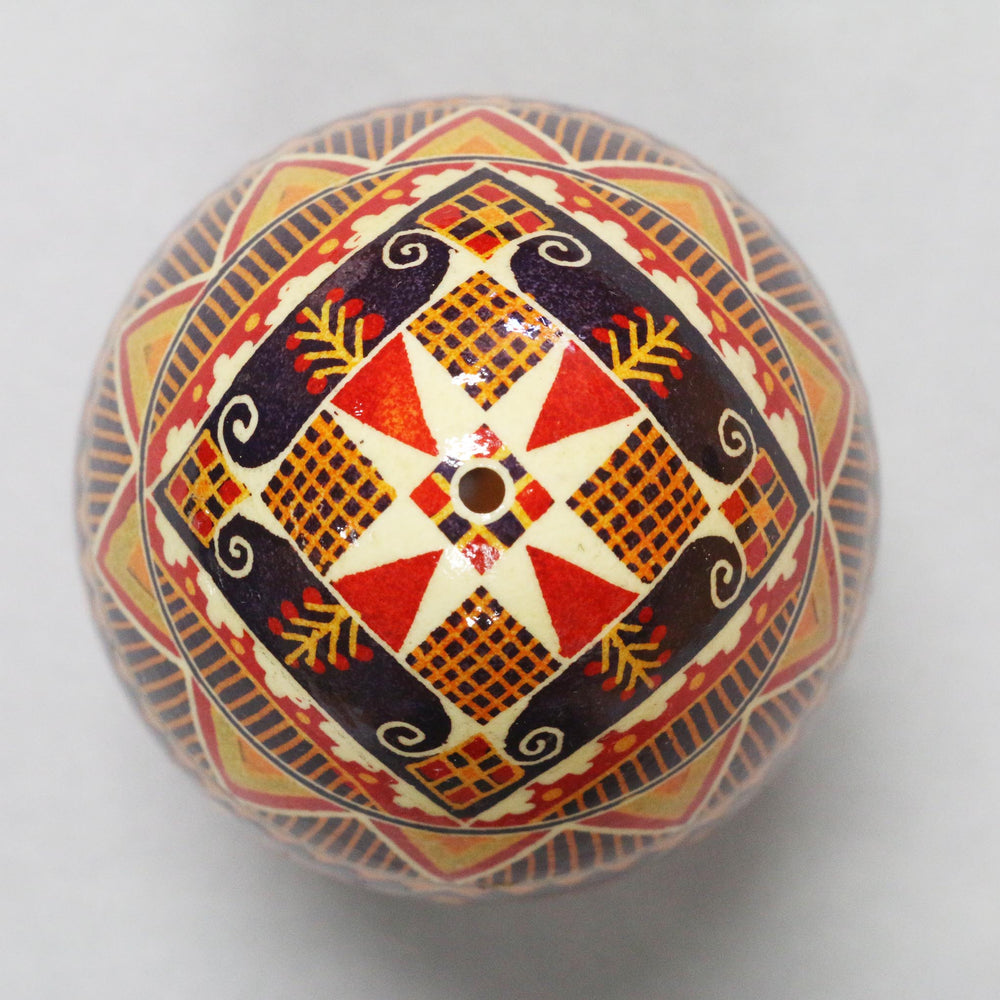 Brightly decorated Goose Egg Shell to warm your home or a friend's heart. There are many flowers and birds representing life, growth and the fulfillment of wishes. Although some goose eggs have similar designs, each egg is unique, highly detailed and created by a skilled Pysanka artist.