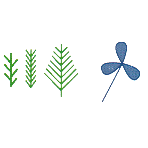 These express the female principle denoting wisdom, elegance and beauty. Leaves and flowers also suggest life and growth.